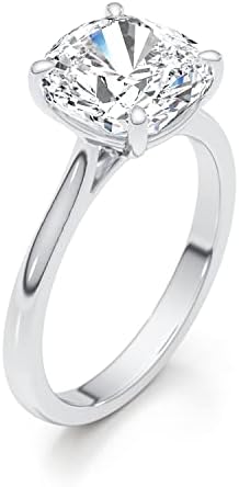 2-3 Carat Cushion/Round/Emerald/Radiant Cut Moissanite Engagement Statement Wedding Band Ring for Women in 14k White Gold (D-E, VS1, 3 CTW) Anniversary Promise Ring Size 4.5 to 11