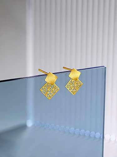 24K Gold Earrings for Women, Hypoallergenic Gold Stud Earrings Square Lightweight Fashion Small Earrings for Mom Girlfriend Gifts