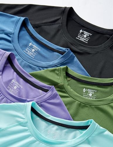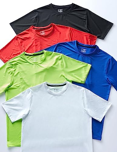 5 Pack Men’s Active Quick Dry Crew Neck T Shirts | Athletic Running Gym Workout Short Sleeve Tee Tops Bulk