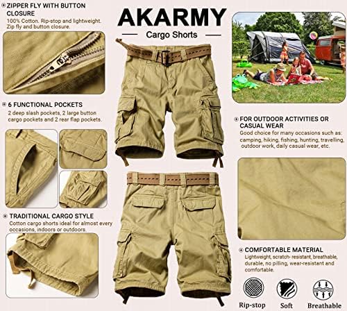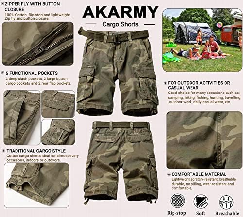 AKARMY Men's Cargo Shorts Relaxed Fit Camo Short Outdoor Multi-Pocket Cotton Work Casual Shorts with No Belt