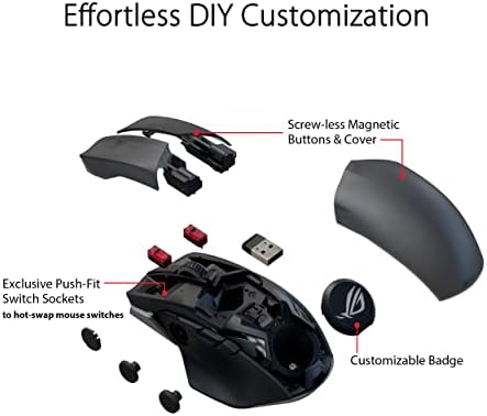 ASUS ROG Spatha X Wireless Gaming Mouse (Magnetic Charging Stand, 12 Programmable Buttons, 19,000 DPI, Push-fit Hot Swap Switch Sockets, ROG Micro Switches&Paracord and Aura RGB lighting),Black