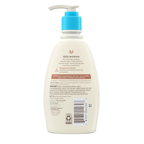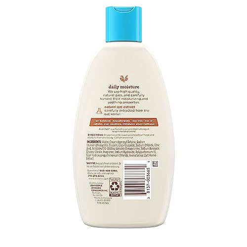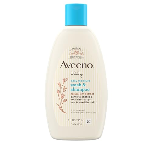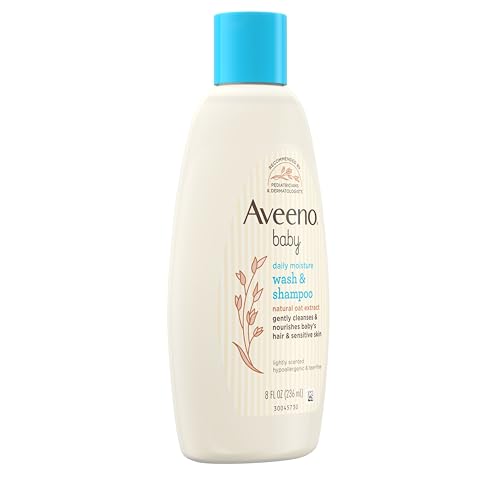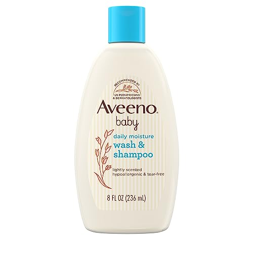 Aveeno Baby Daily Moisture Gentle Body Wash & Shampoo with Oat Extract, 2-in-1 Baby Bath Wash & Hair Shampoo, Tear- & Paraben-Free for Hair & Sensitive Skin, Lightly Scented, 18 fl. oz