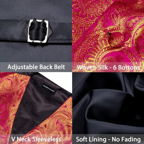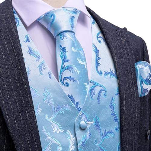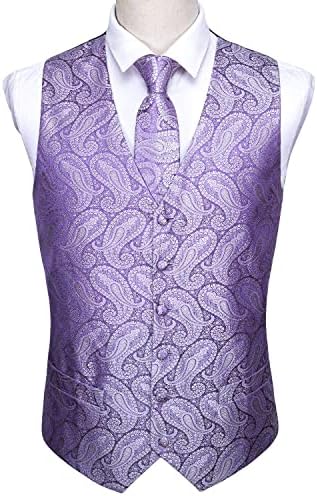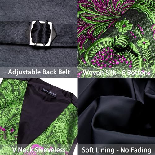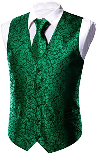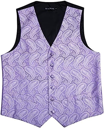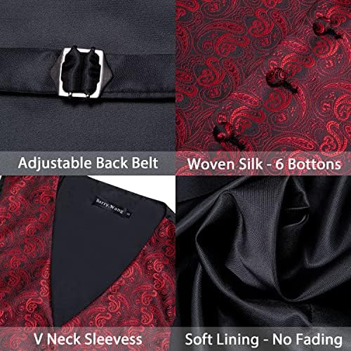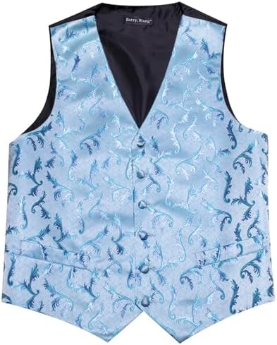 Barry.Wang Formal Men Vest Paisley Jacquard Silk Tie Suit Waistcoat Set Wedding 5PCS