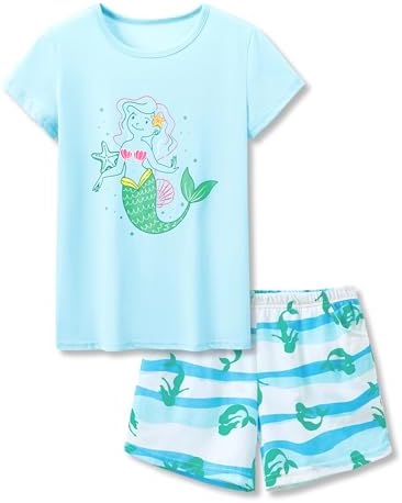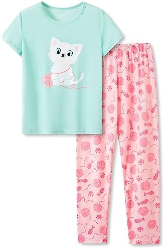 Beezizac Girls Cotton Sleepover Pajama Set for Little & Big Girls Short Sleeve Set 2-Piece PJ Size 4T-18