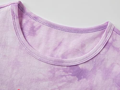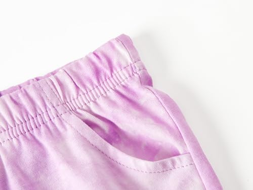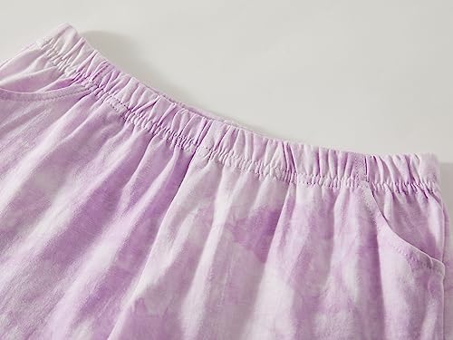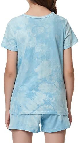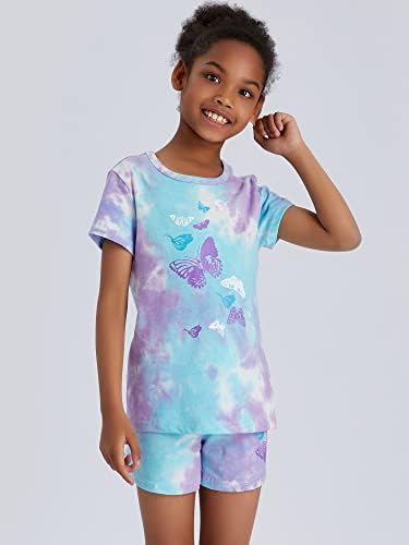 Beezizac Tie Dye Pajamas for Girls - 100% Cotton Glitter Butterfly Cat Summer Short Sleeve PJ Set Tween Clothes Size 4T - 18