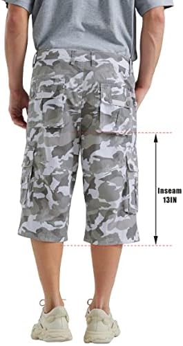 BEST SOUTH Men's Capri Long Twill Cargo Shorts below Knee 13 Inches Cotton Relaxed Fit Casual Multi-Pocket