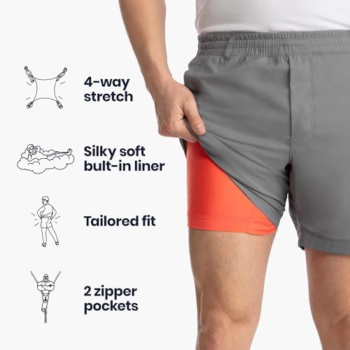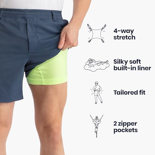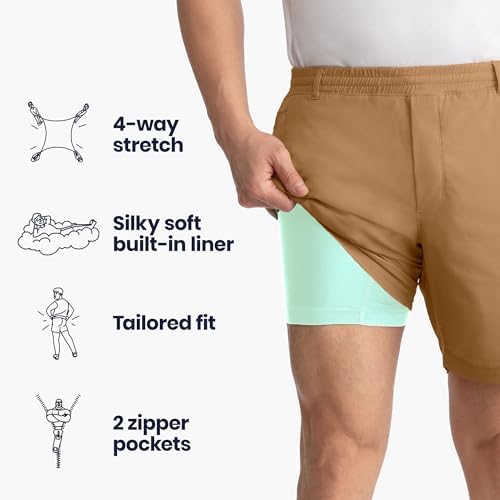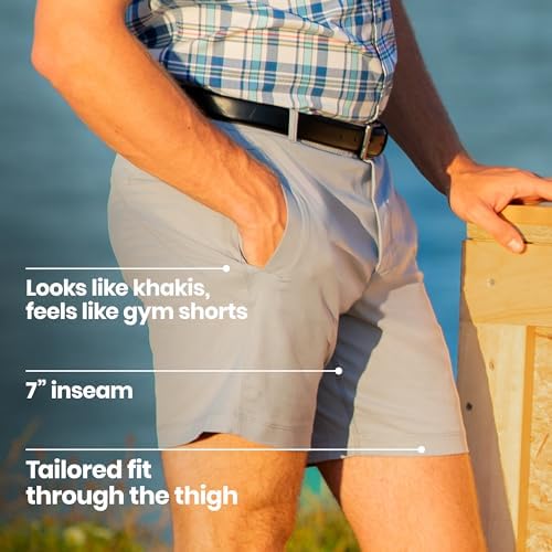 birddogs Mens Khaki Shorts – Casual, Slim Fit, Stretch Short with Built-in Liner for Comfort – Regular Length, 7” Inseam