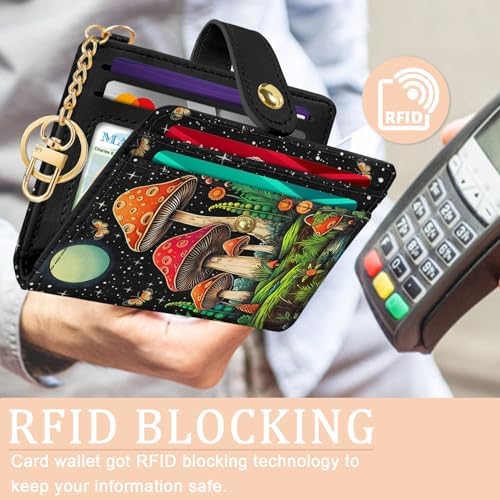 Black Cat Floral Rfid Women Wallet, Small Slim Thin Credit Card Wallet, PU Leather Bifold Cash Wallet, Zipper Coin Pocket & ID Window, Female Ladies Teen Girls Girly Wallet