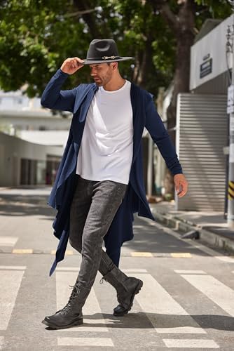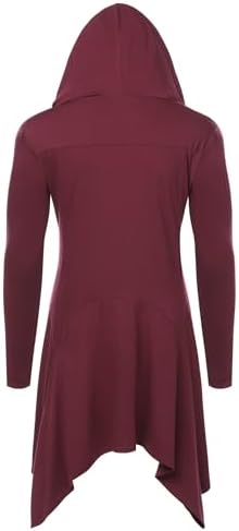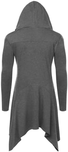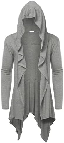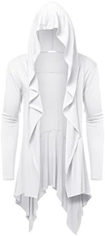 COOFANDY Long Hooded Cardigan Ruffle Shawl Collar Open Front Lightweight Drape Cape Overcoat with Pockets