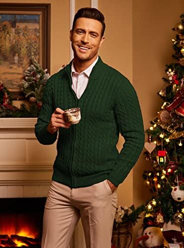 COOFANDY Men's Full Zip Cardigan Sweater Slim Fit Cable Knitted Zip Up Sweater with Pockets
