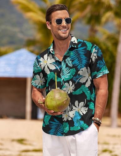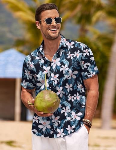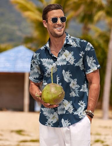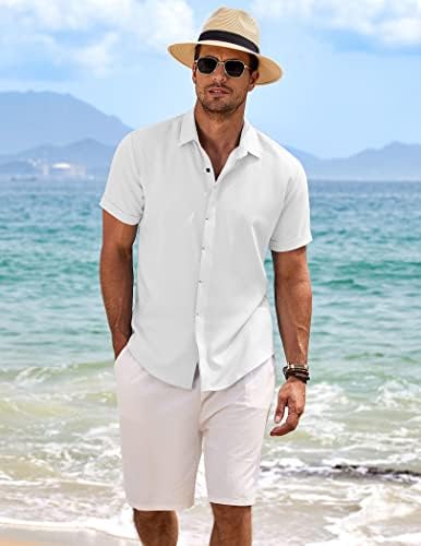 COOFANDY Men's Linen Shirts Short Sleeve Casual Shirts Button Down Shirt for Men Beach Summer Wedding Shirt