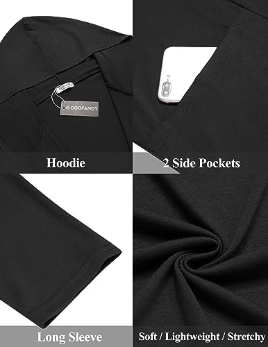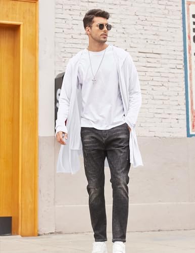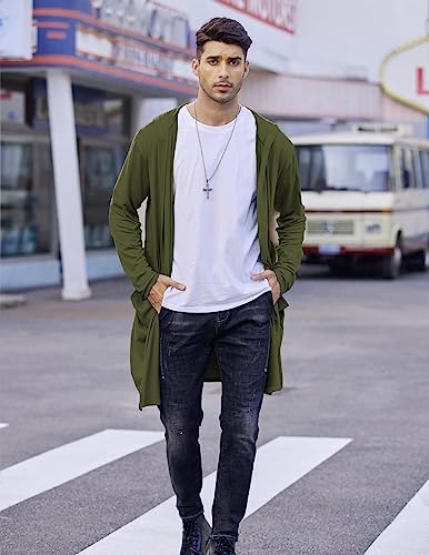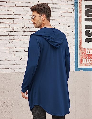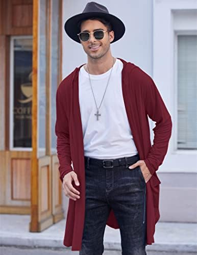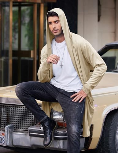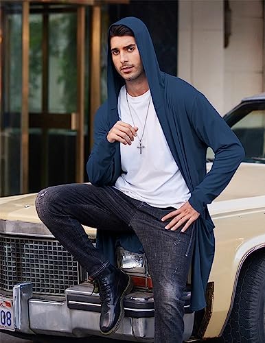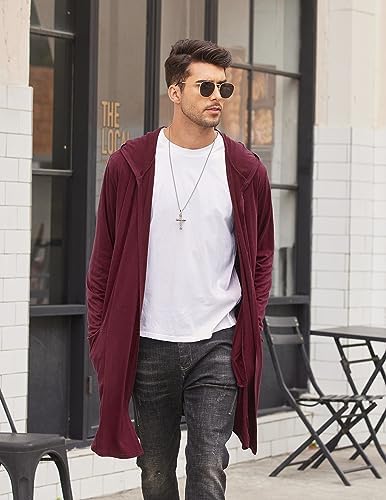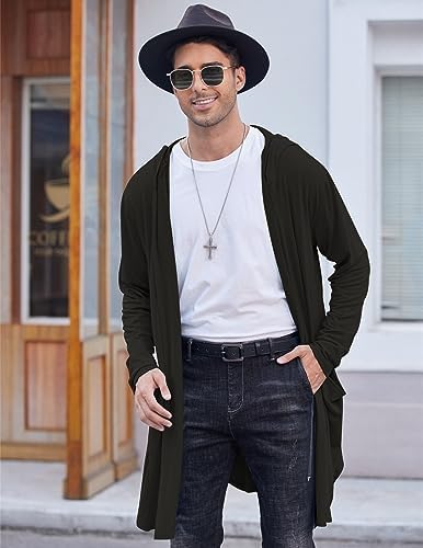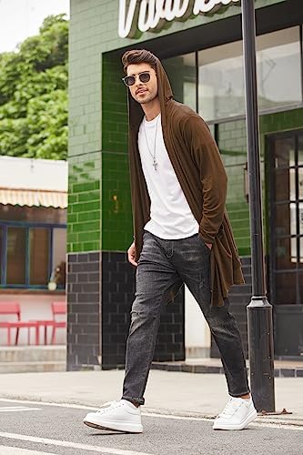 COOFANDY Men's Long Hooded Cardigan Shawl Collar Lightweight Open Front Drape Cape Overcoat with Pockets