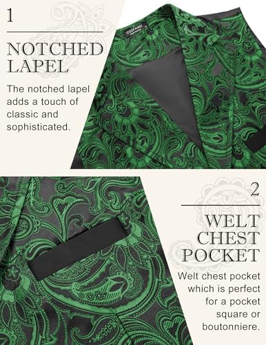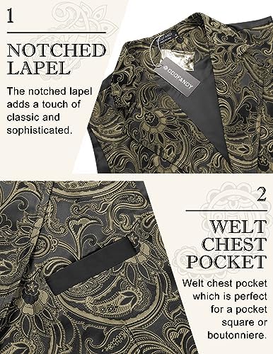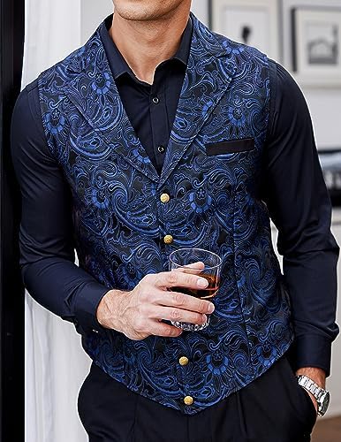 COOFANDY Mens Suit Vest Paisley Floral Victorian Vests Gothic Steampunk Formal Waistcoat Tuxedo Vests with Notched Lapels