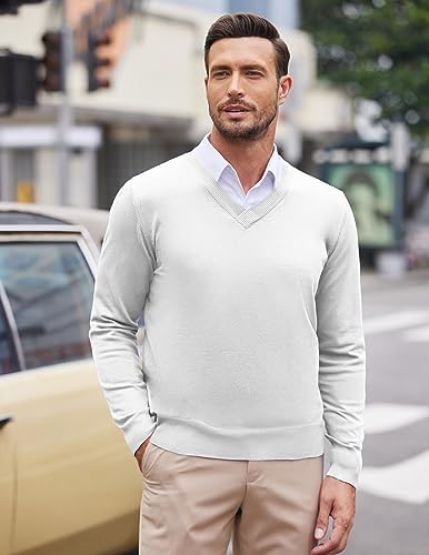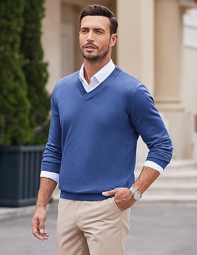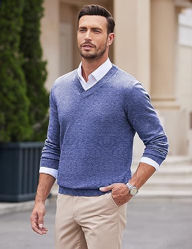 COOFANDY Mens V Neck Dress Sweater Long Sleeve Slim Fit Fashion Pullover Sweater