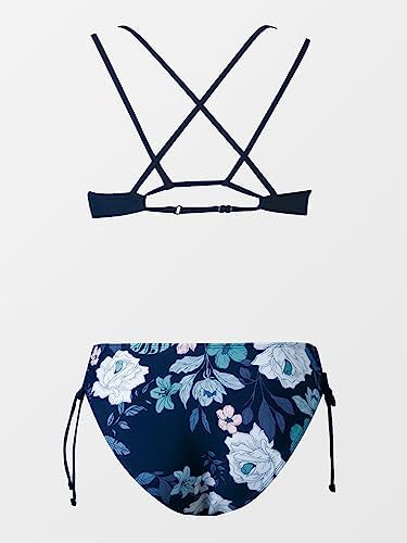 CUPSHE Women Swimsuit Bikini Set Two Piece Bathing Suit Criss Cross Back Strappy Side with Double Spaghetti Straps