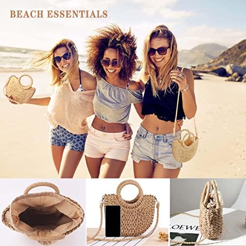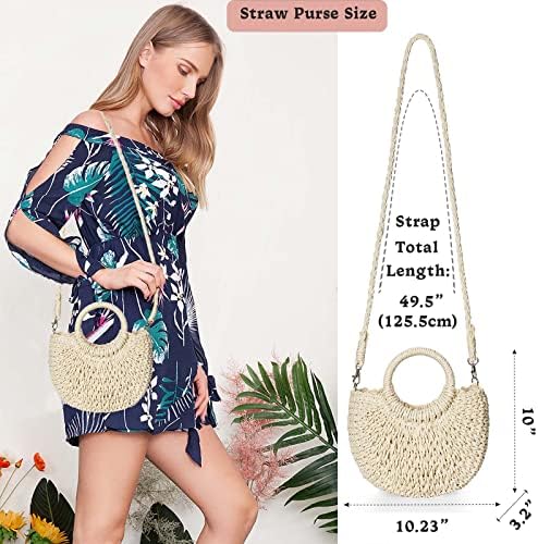Straw Handbags Purses Crossbody Pocketbook Bag Casual Woven Beach Bags Summer Hobo Hippie Chic Tote Bags with Chain