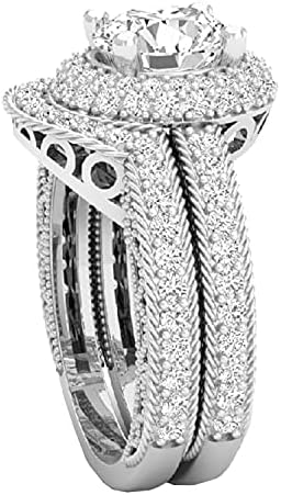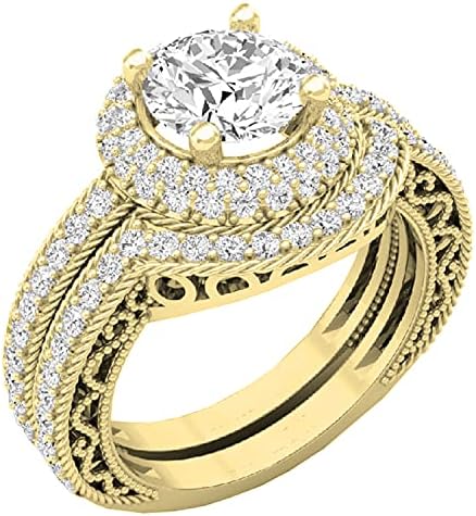 Dazzlingrock Collection Round White Cubic Zirconia CZ Halo Wedding Bridal Fashion 2 Piece Engagement Ring Set, Available in 10K/14K/18K Solid Gold
