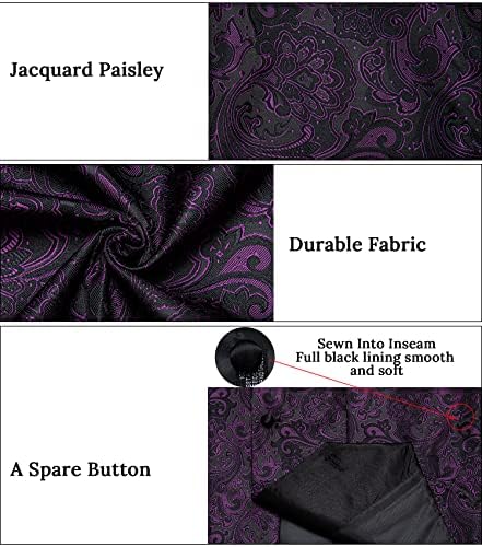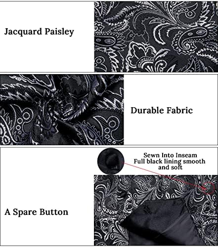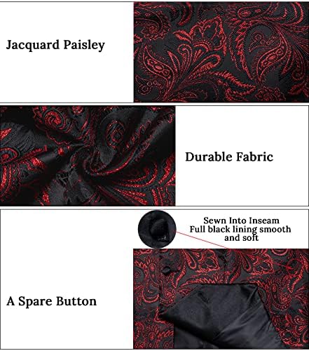 HISDERN Mens Vest Tie Set 3PC Formal Waistcoat Paisley Floral Jacquard Necktie Pocket Square Suit Vests Wedding Party