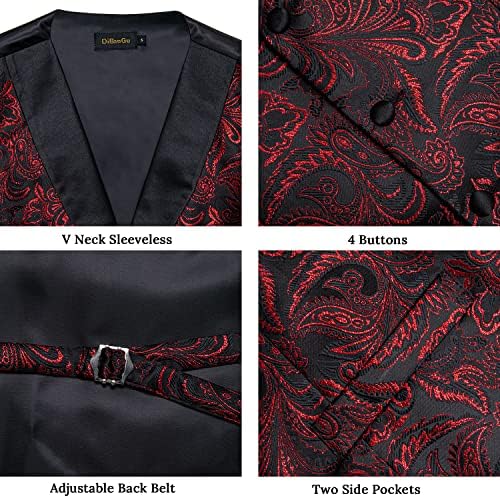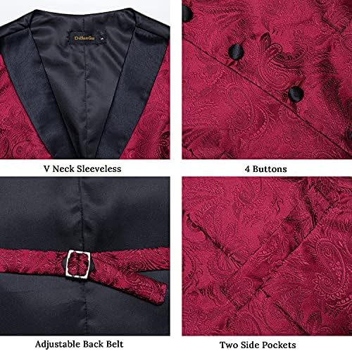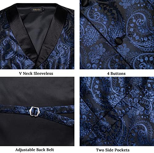 DiBanGu Mens Paisley Suit Vest Silk Jacquard Waistcoat and Necktie Set Formal Shawl Collar Dress Vest 7PCS for Wedding Party