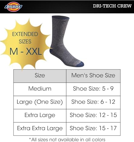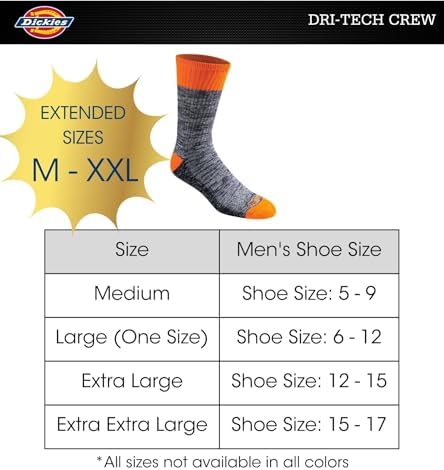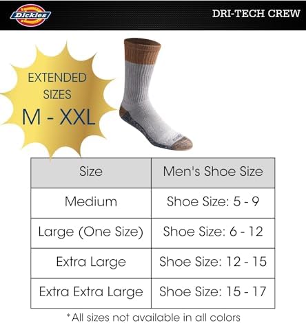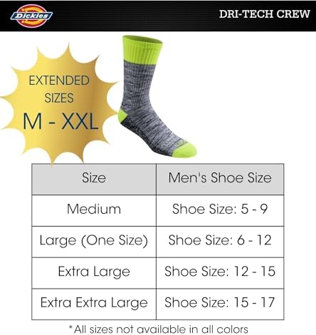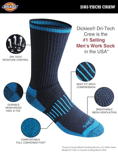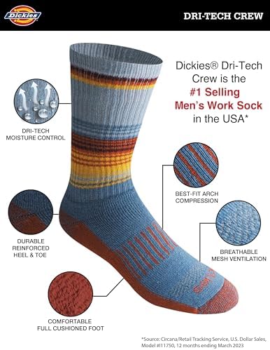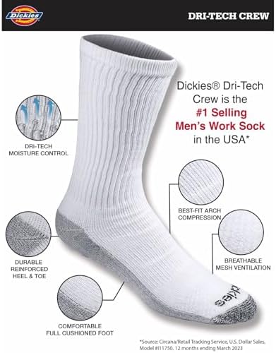 Dickies Men's Dri-Tech Moisture Control Crew Socks Multipack, Available in M-XXL