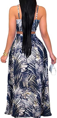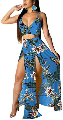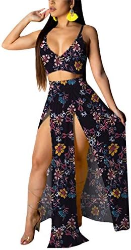 EOSIEDUR Women's Chiffon Bohemian Floral Printed 2 Piece Sets Crop Cami Top & Split Beach Party Maxi Dress