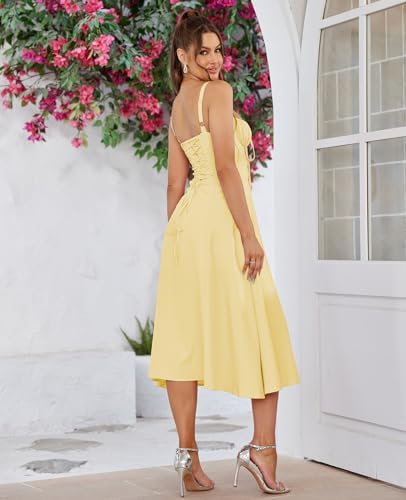 Floral Midi Corset Dress Boho Flowy Slit Lace Up Dresses for Women Going Out A Line Casual Sundress
