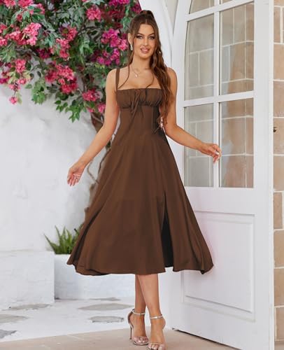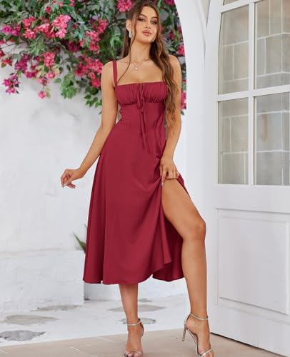 Floral Midi Corset Dress Boho Flowy Slit Lace Up Dresses for Women Going Out A Line Casual Sundress