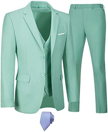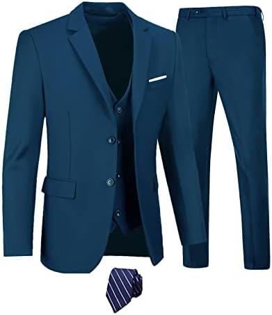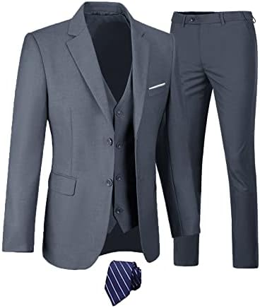 Furuyal Men's Suits 3 Piece Slim Fit Suit Set,Two Button Wedding Business Tuxedo Solid Blazer Jacket Vest Pants with Tie