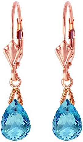 Galaxy Gold GG 14k Solid Gold Jewelry Set: Natural Briolette Blue Topaz Pendant Necklace and Dangle Earrings