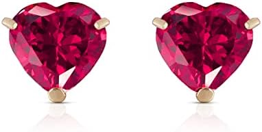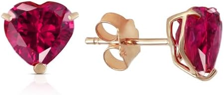 Galaxy Gold GG 14K Solid Yellow Gold Lab Grown Heart Ruby Necklace and Stud Earrings Set Grade AAA