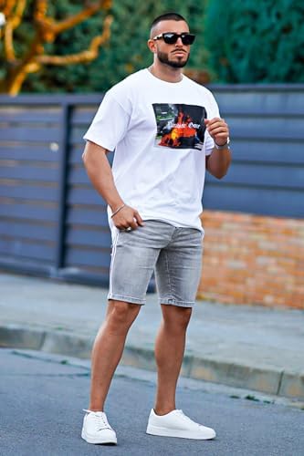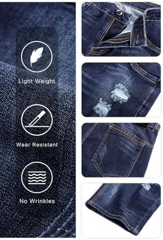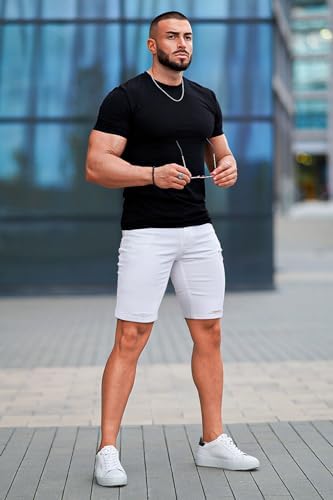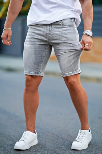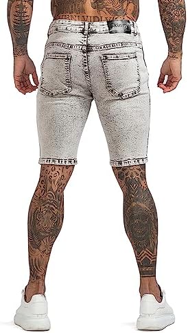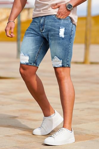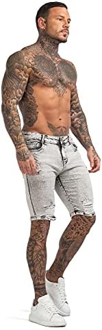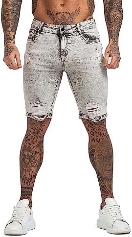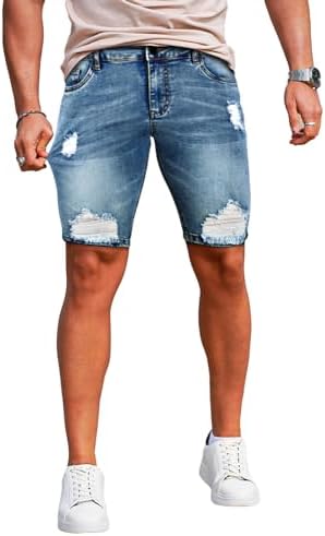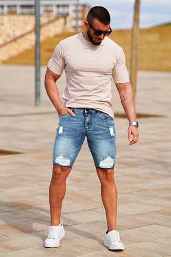 GINGTTO Men's Denim Shorts Slim Fit Stretch Ripped Short Jeans