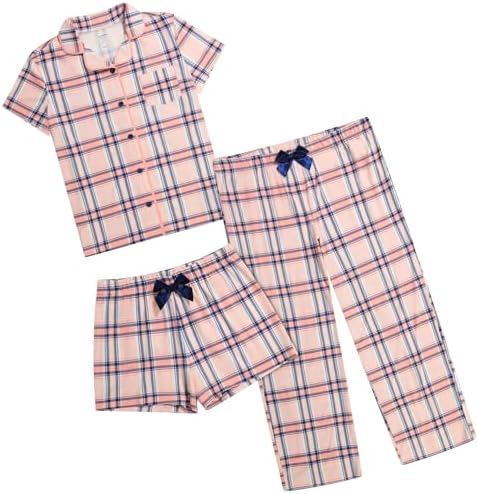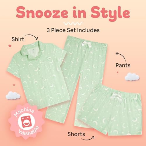 Girls Ultra Soft Button Down Pajamas, 3 Piece Pajama Set, pjs for teen girl, Size 7-16