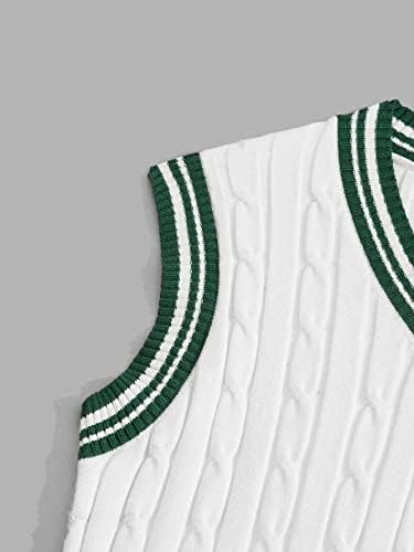 GORGLITTER Men's Striped Cable Knit Sweater Vest Sleeveless V Neck Pullover Sweater Tops