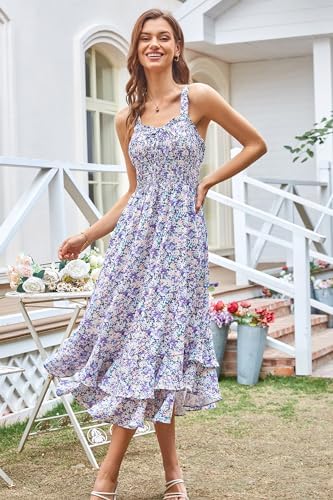 GRACE KARIN Women's 2024 Summer Floral Boho Dress Square Neck Strapped Swing A Line Beach Long Maxi Dress