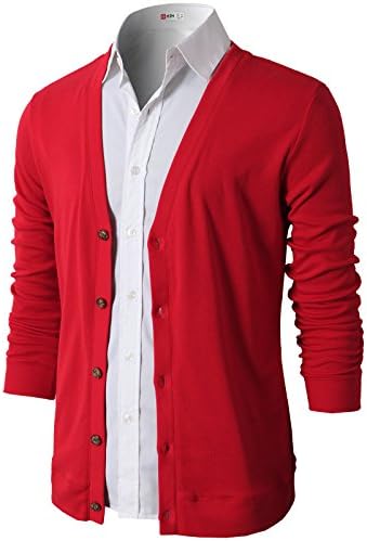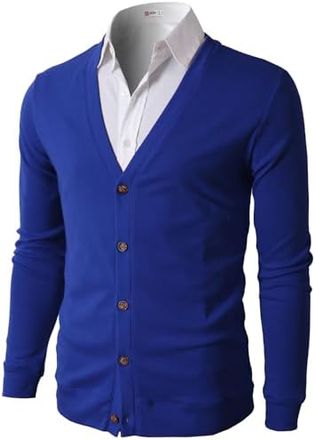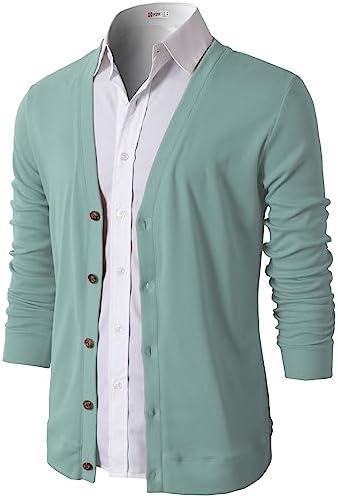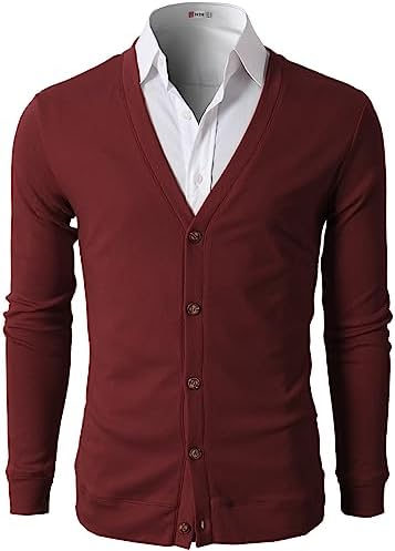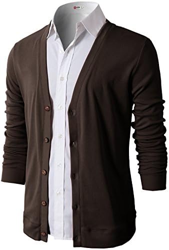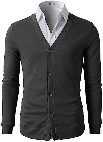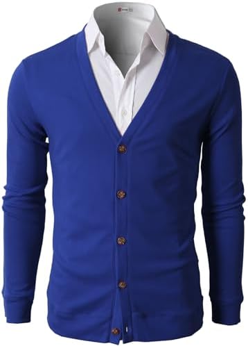 H2H Mens Casual Slim Fit Cardigans V-Neck Basic Designed Long Sleeve Button Down
