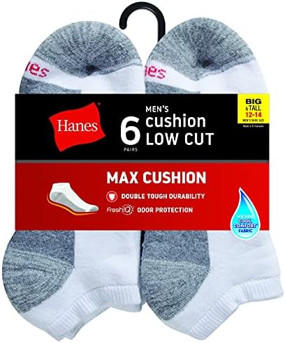 Hanes Men's Max Cushion Low Cut Socks, 6 and 8 Packs