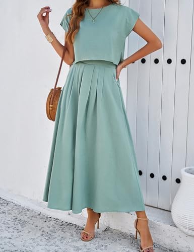 HangNiFang Summer Skirt Sets Women 2 Piece Outfits Cap Sleeve Top Elastic Waist Maxi Dress Sets with Pockets