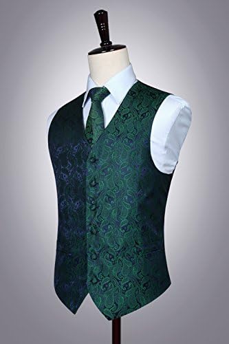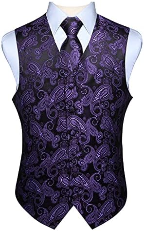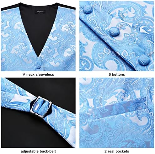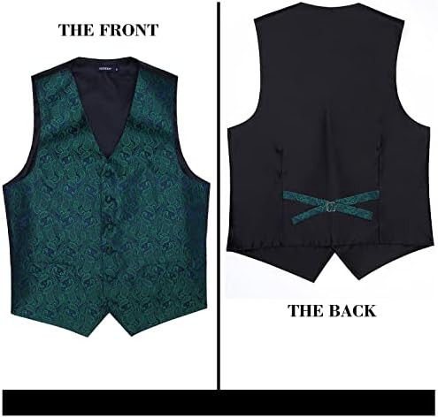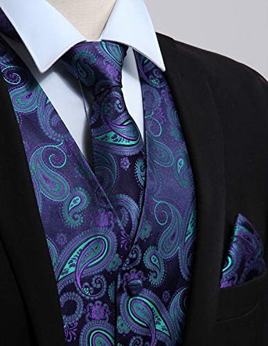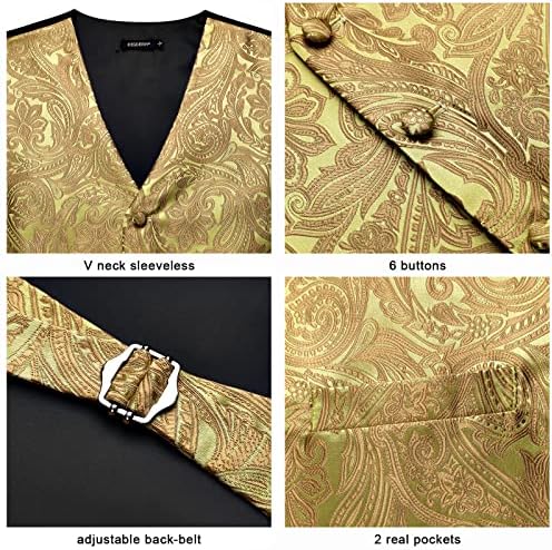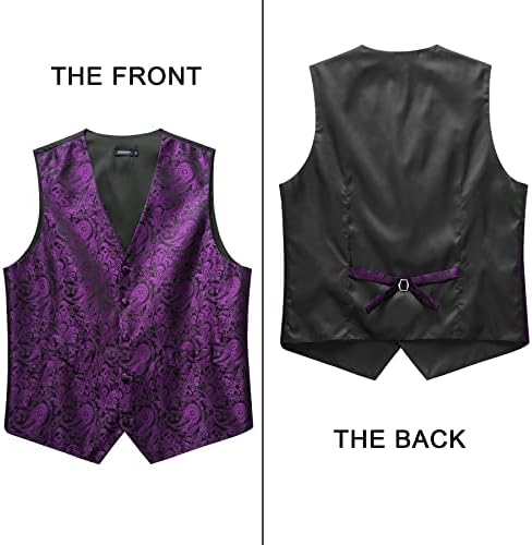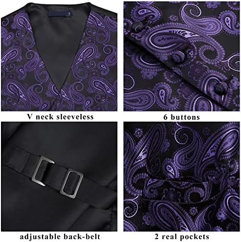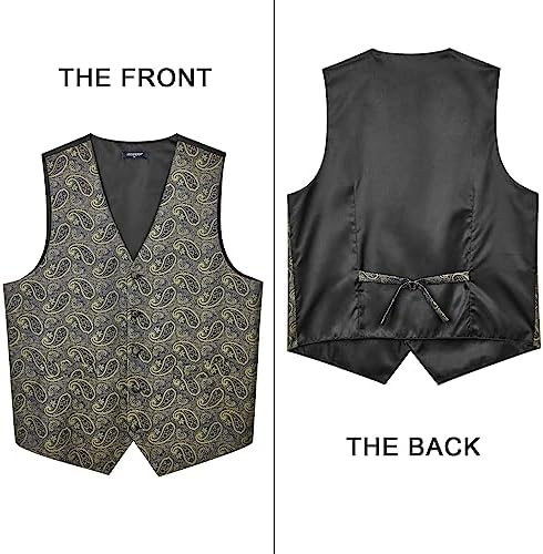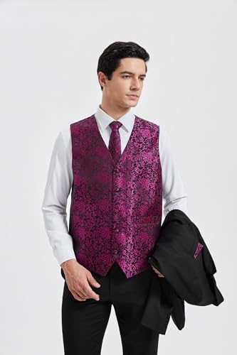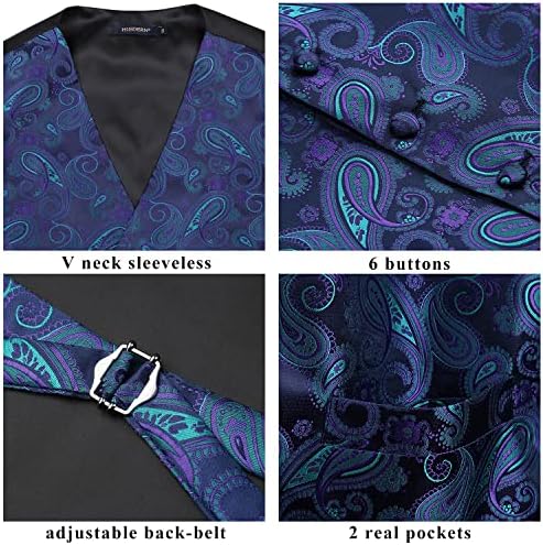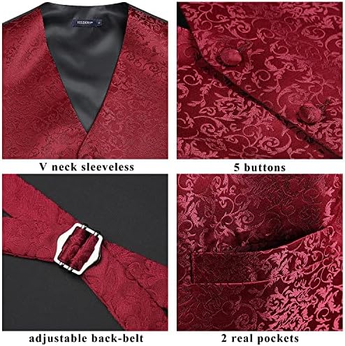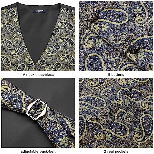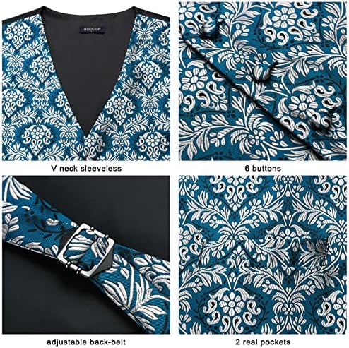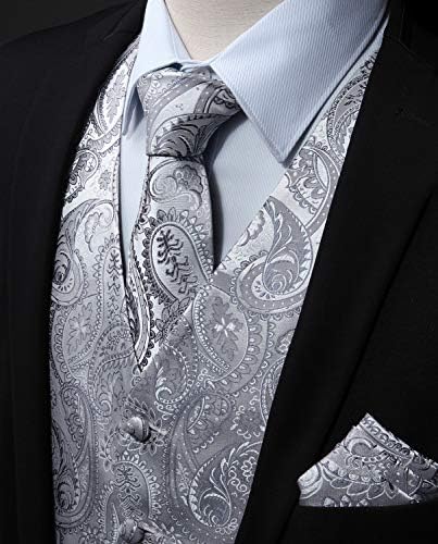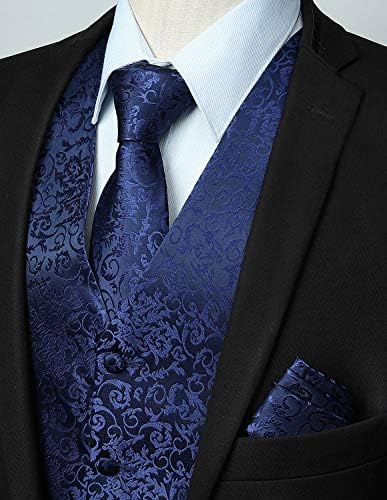 HISDERN Mens Vest Tie Set 3PC Formal Waistcoat Paisley Floral Jacquard Necktie Pocket Square Suit Vests Wedding Party
