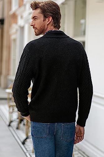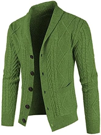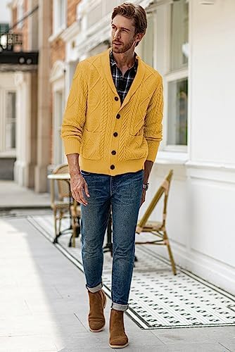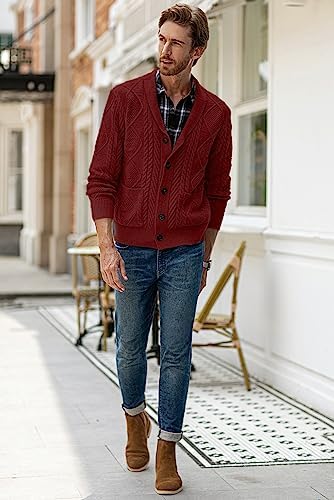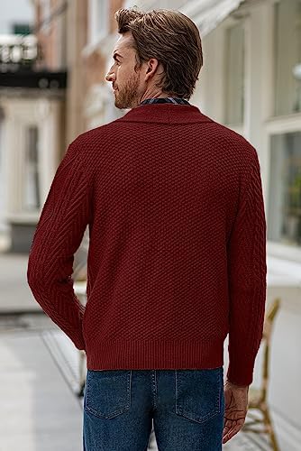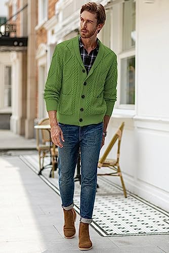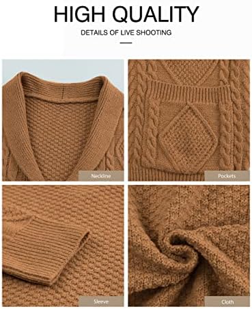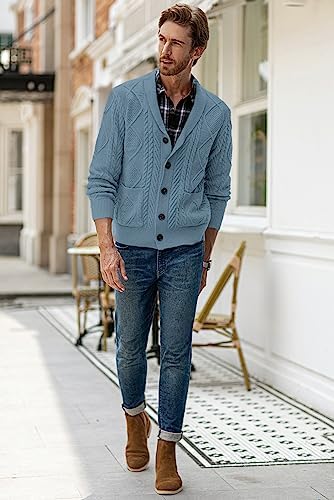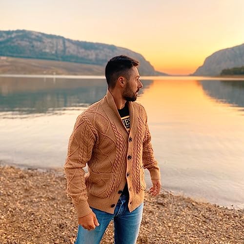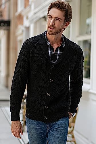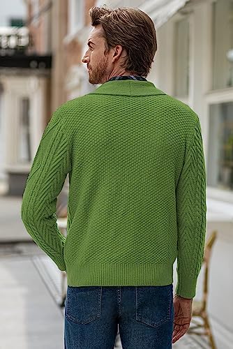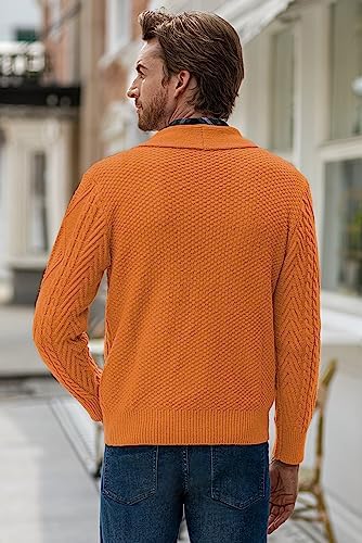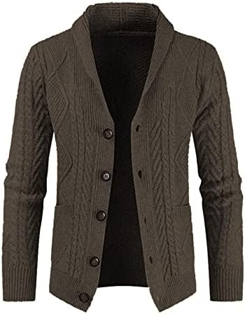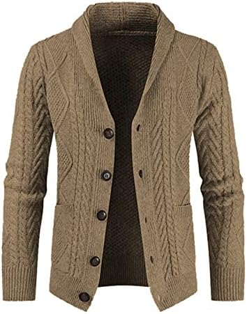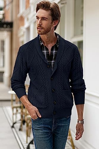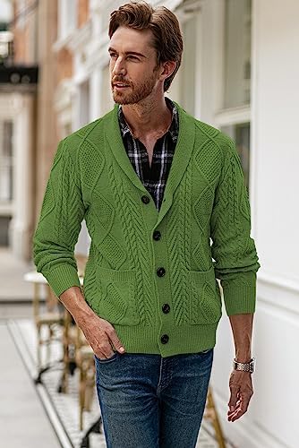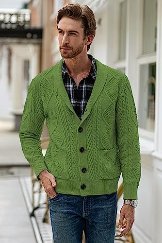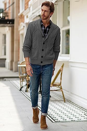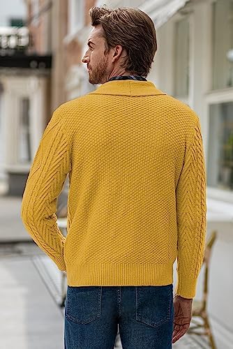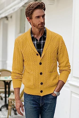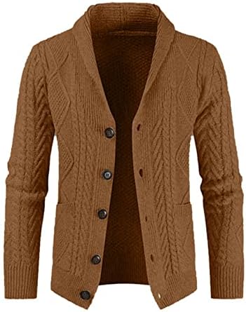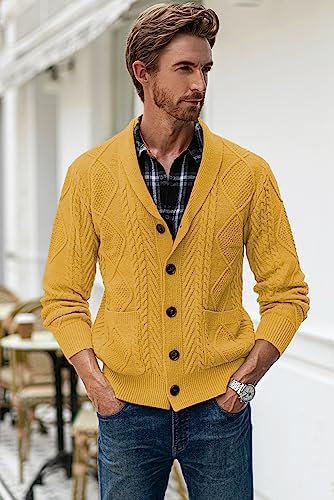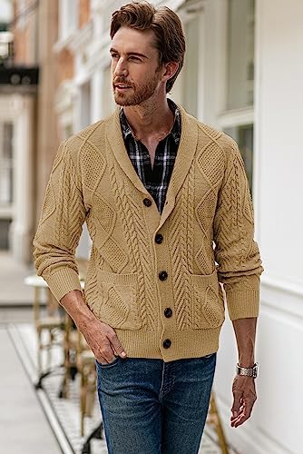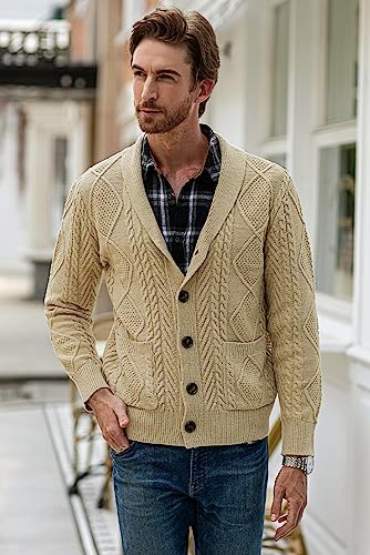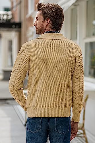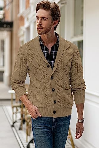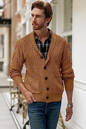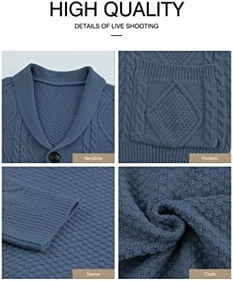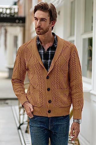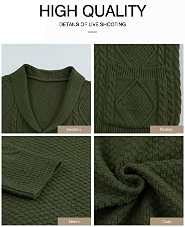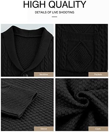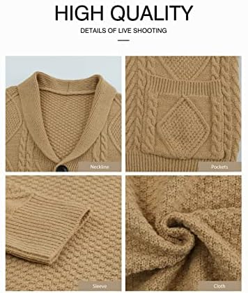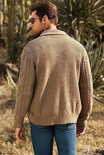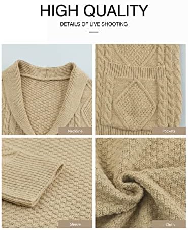 JMIERR Men's Casual Long Sleeve Shawl Collar Buttons Down Cable Knit Cardigan Sweater with Pockets