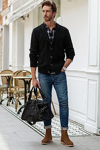 Kallspin Men's Cardigan Sweater Wool Blend Cable Knit V Neck Buttons Cardigan with Pockets