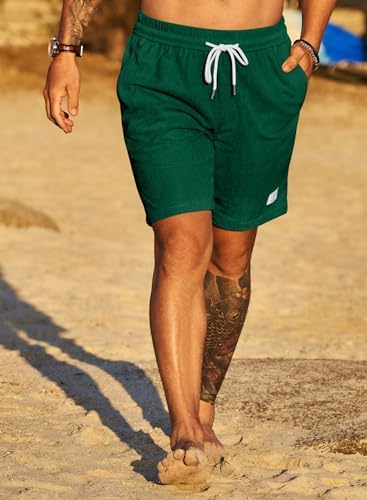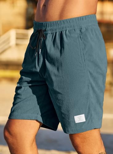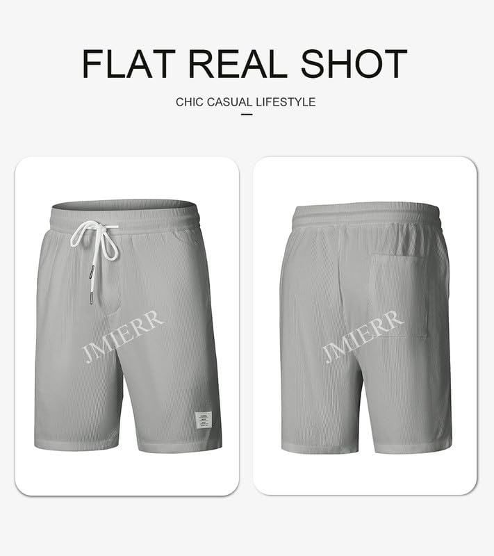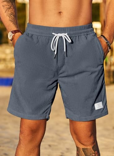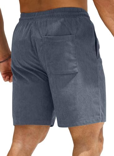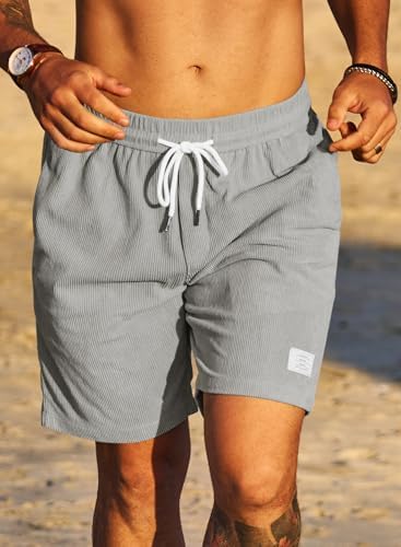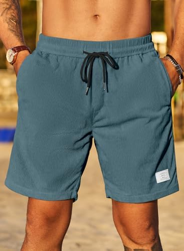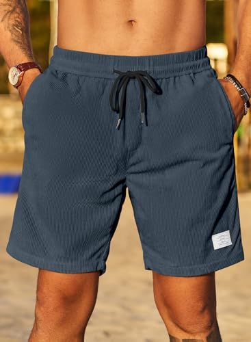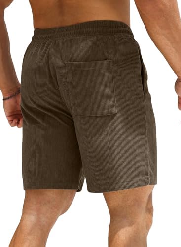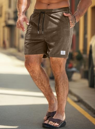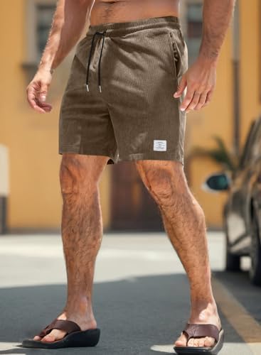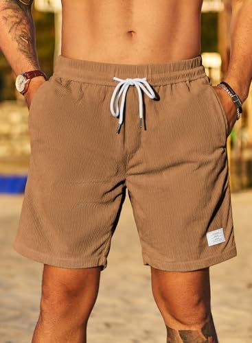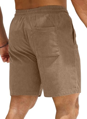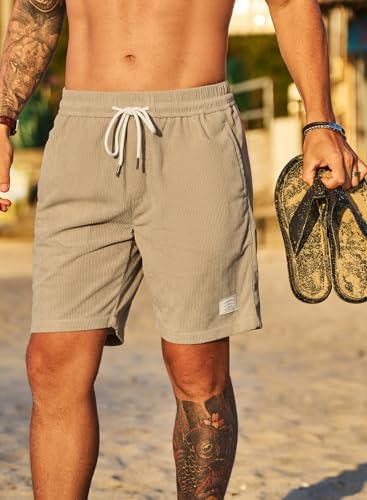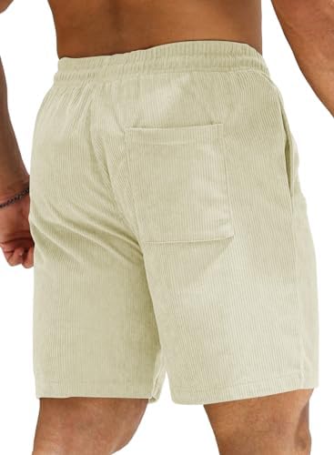 JMIERR Men's Corduroy Shorts Casual Elastic Waist Drawstring Lightweight Summer Beach Shorts