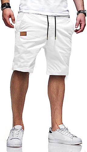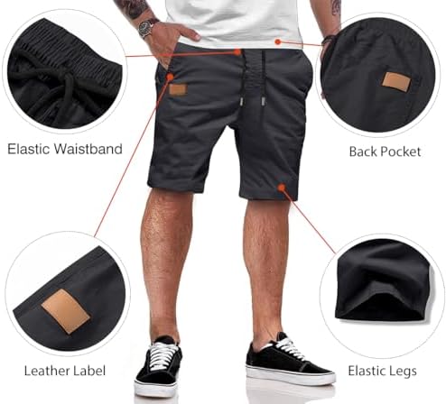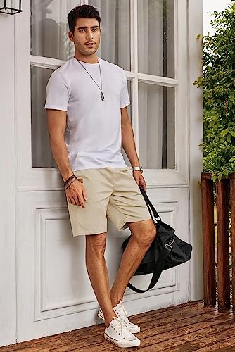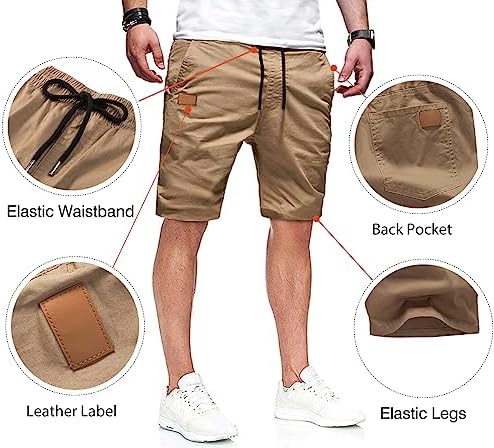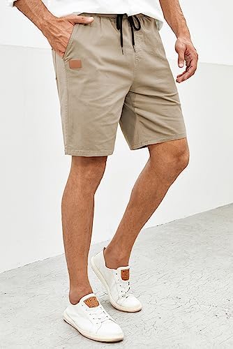JMIERR Mens Casual Shorts - Cotton Drawstring Summer Beach Stretch Twill Chino Golf Shorts