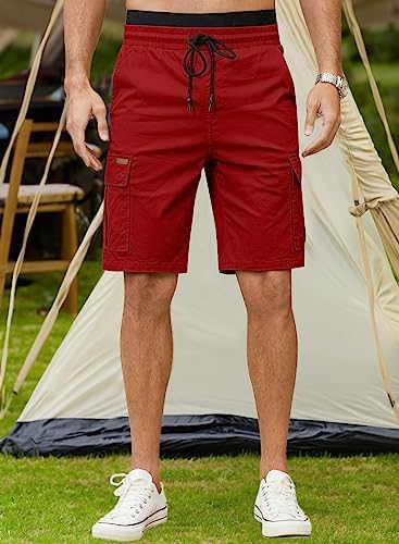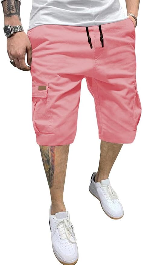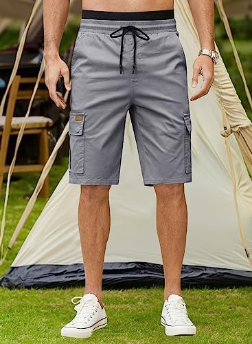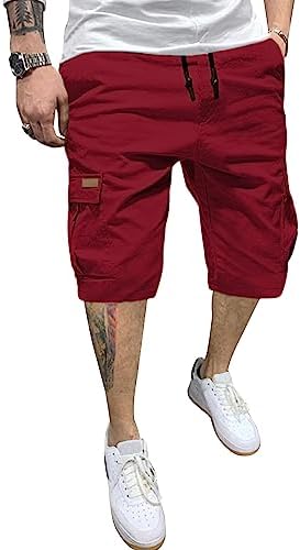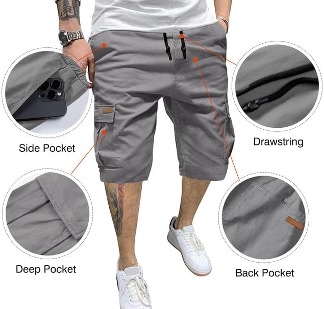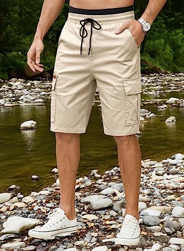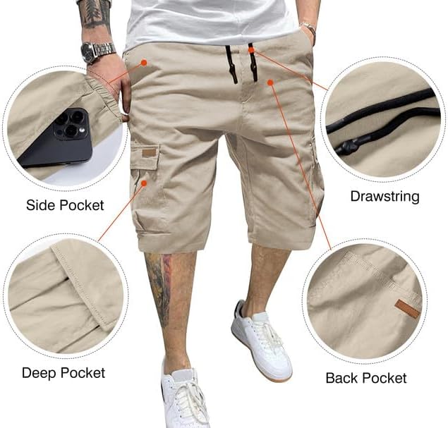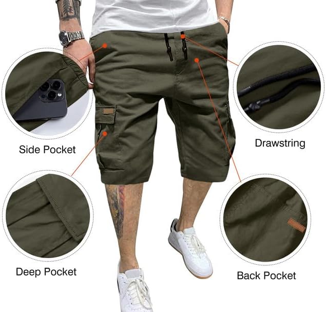 JMIERR Mens Casual Twill Cargo Shorts Cotton Drawstring Classic Cargo Stretch Short with 6 Pockets