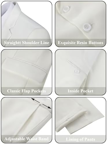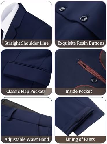 HUUTOE Men's 3 Piece Suit Slim Fit Business Wedding Groomsmen Prom Suits One Button Blazer Jacket Vest Pants Tuxedo Set