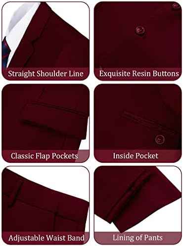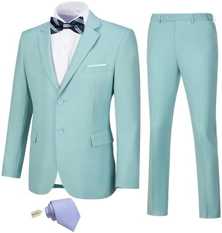JPF Men's 2 Piece Slim Fit Suit Set, Two Button Solid Jacket Pants with Tie Suits for Men