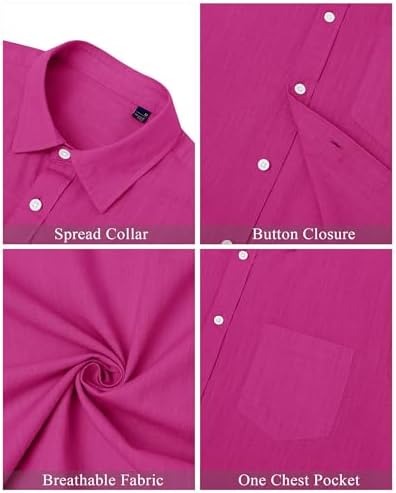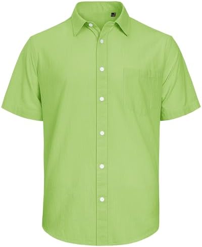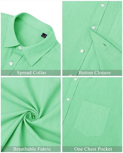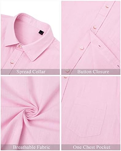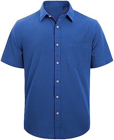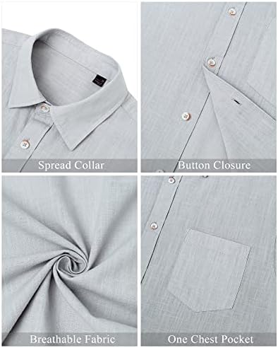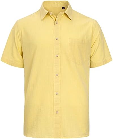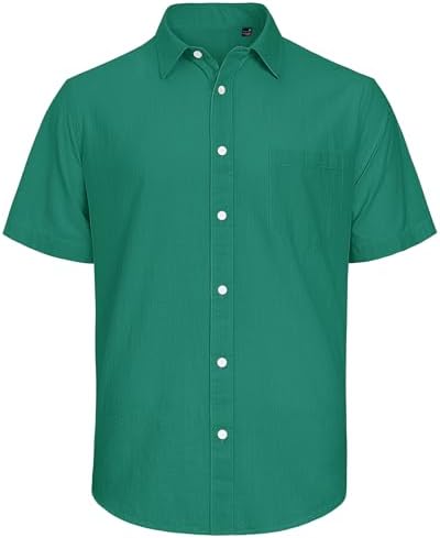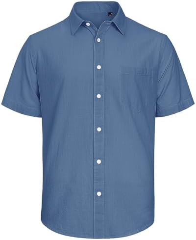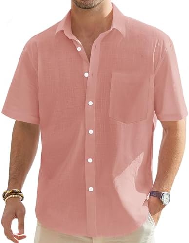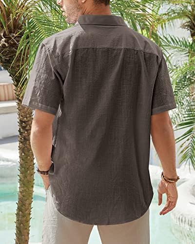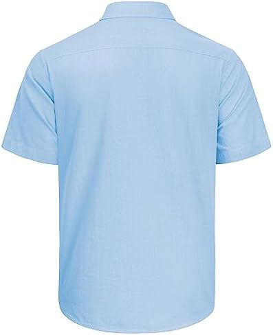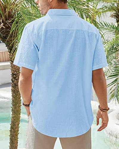 J.VER Men's Cotton Linen Short Sleeve Shirts Casual Lightweight Button Down Shirts Vacation Beach Summer Tops with Pocket