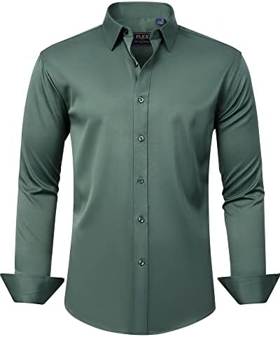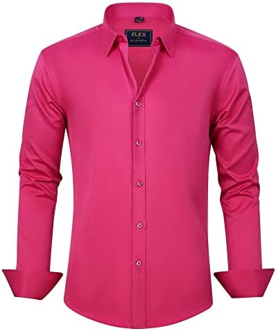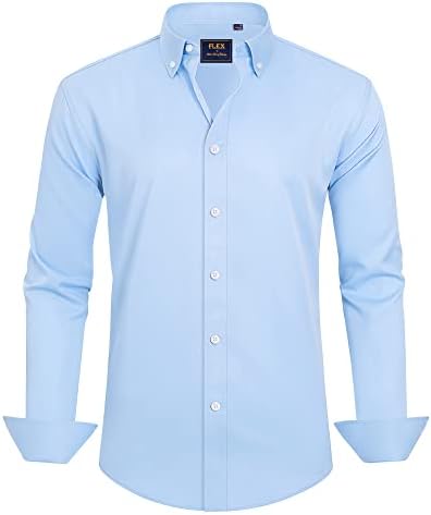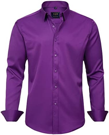 J.VER Men's Dress Shirts Solid Long Sleeve Stretch Wrinkle-Free Formal Shirt Business Casual Button Down Shirts