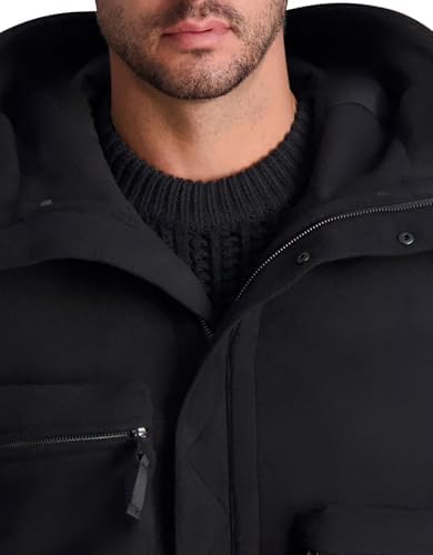 KARL LAGERFELD Men's Long Sleeve Four Front Pockets Wool Blend Hooded Jacket