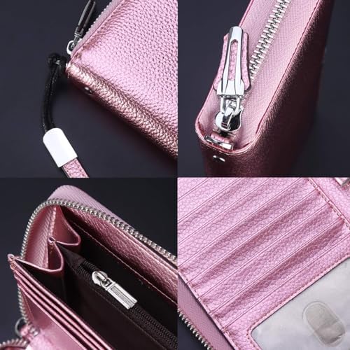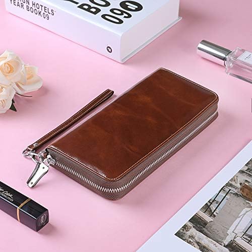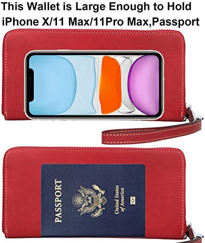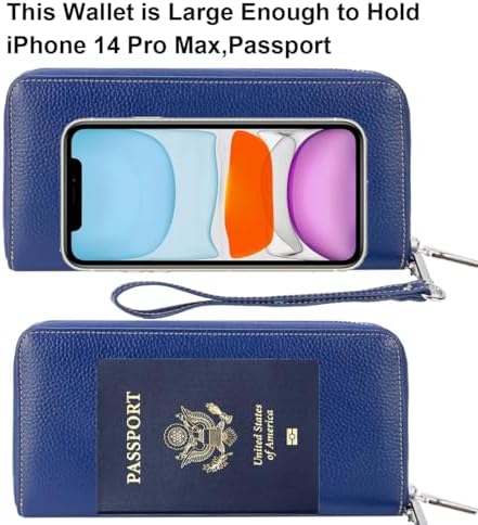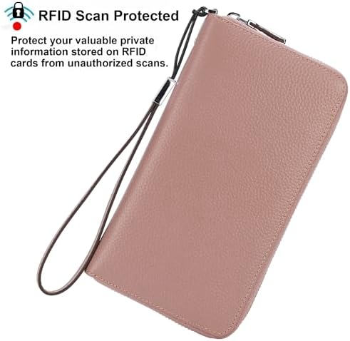 Lavemi Women's RFID Blocking 100% Leather Large Capacity Zip Around Wallet Phone Holder Clutch Travel Purse Wristlet