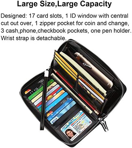 GOIACII Women's Wallet Large Capacity Double Zip Around Credit Card Holder Leather Ladies Wallet with RFID Blocking Phone Wristlet Purse Black